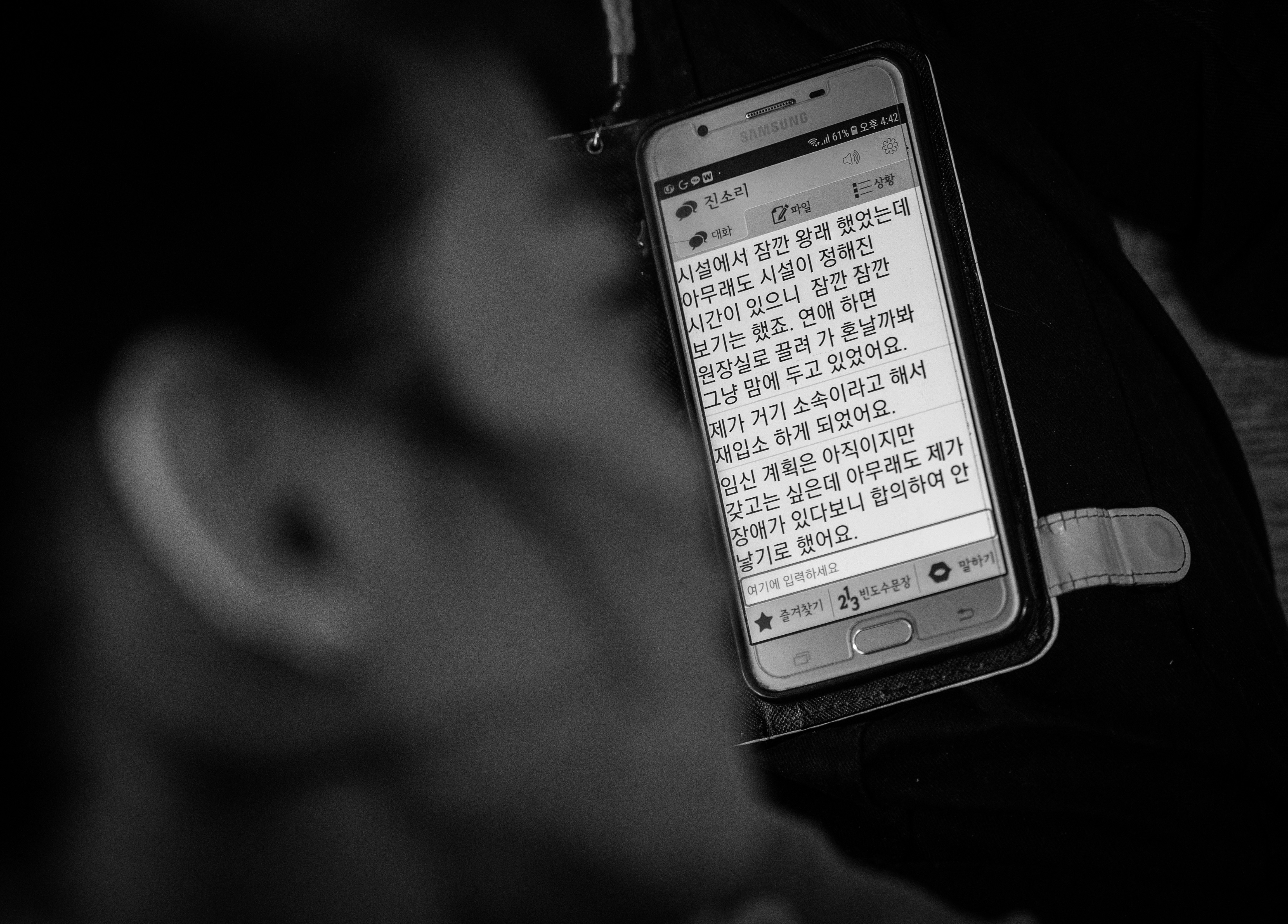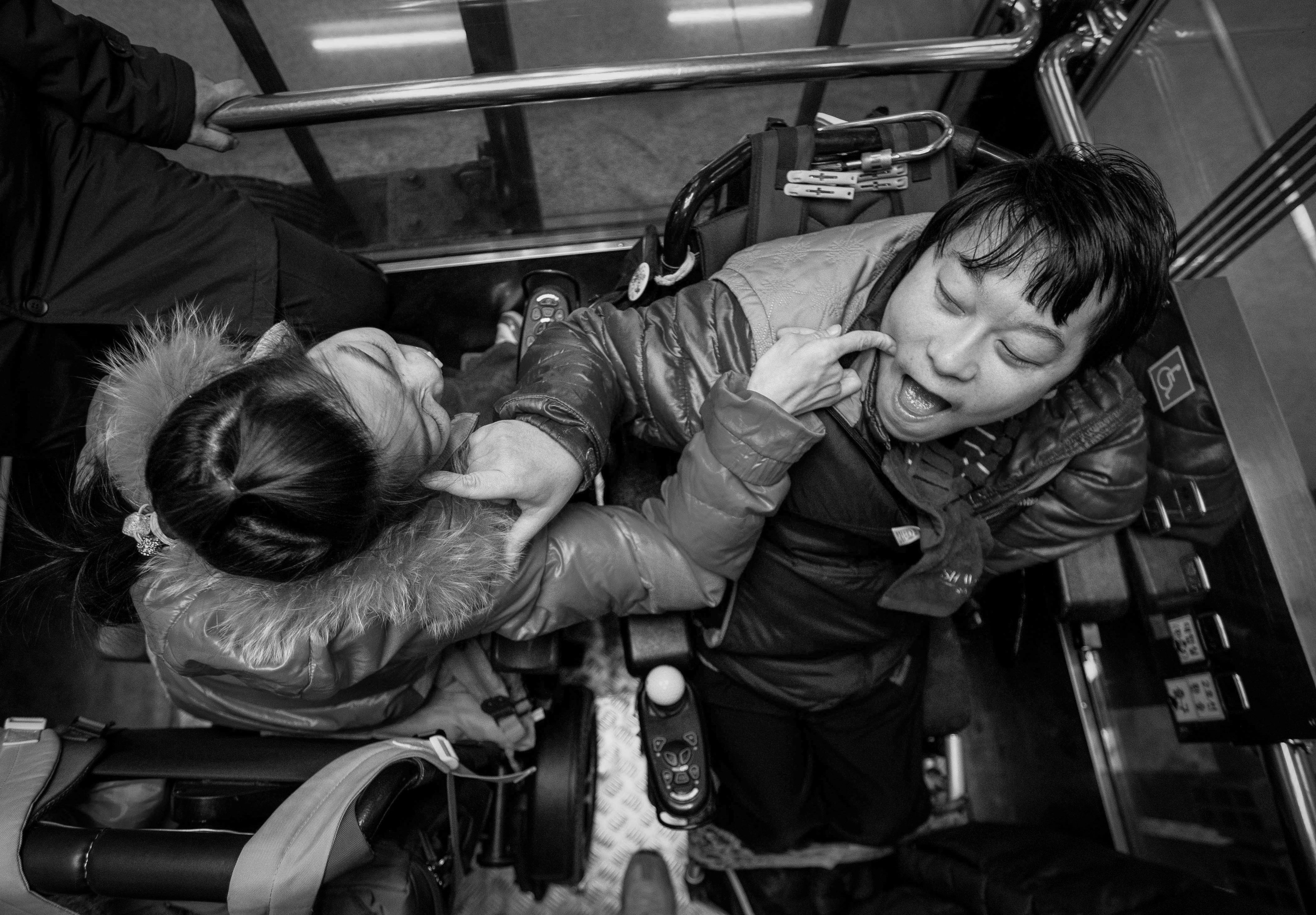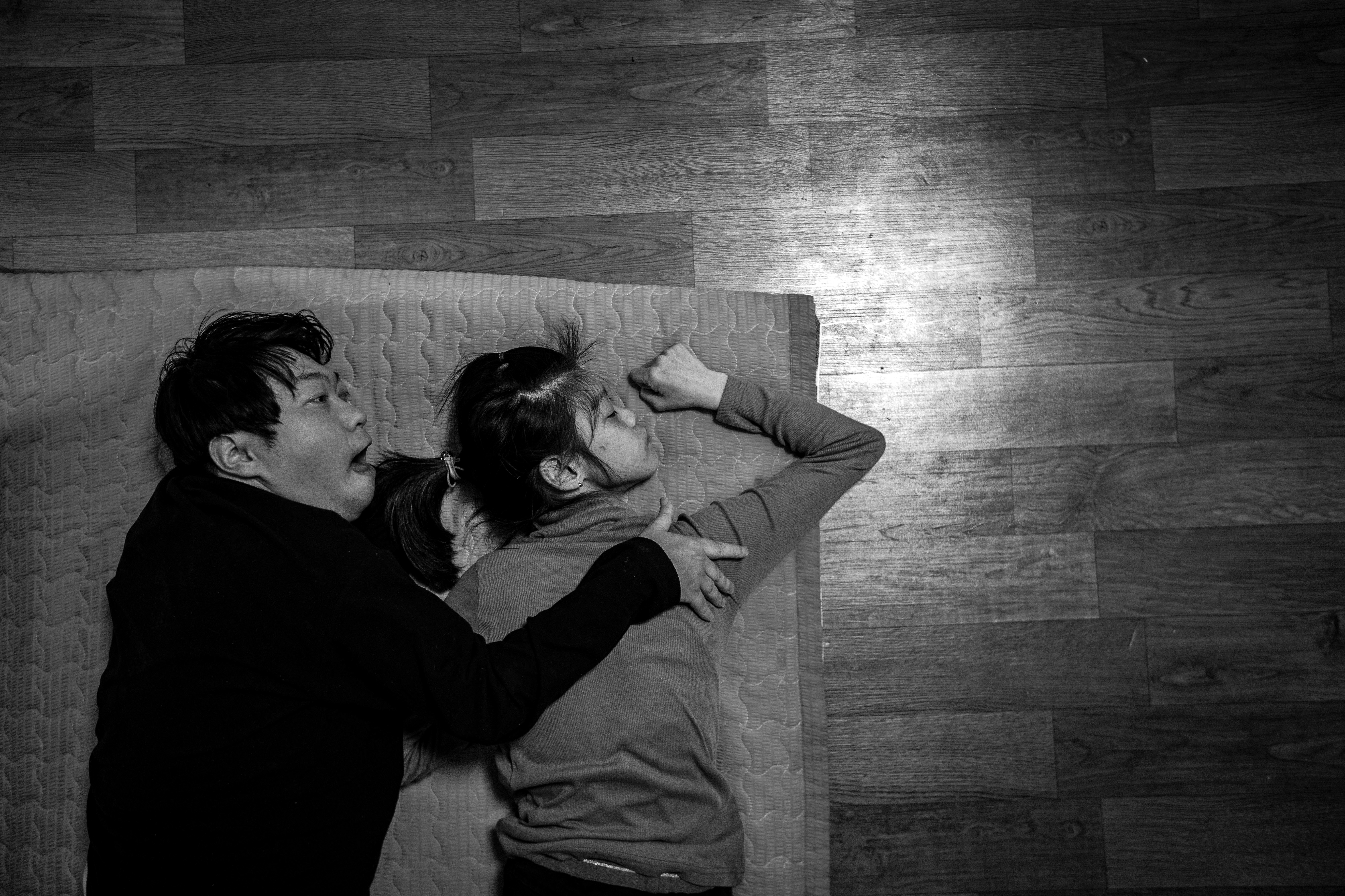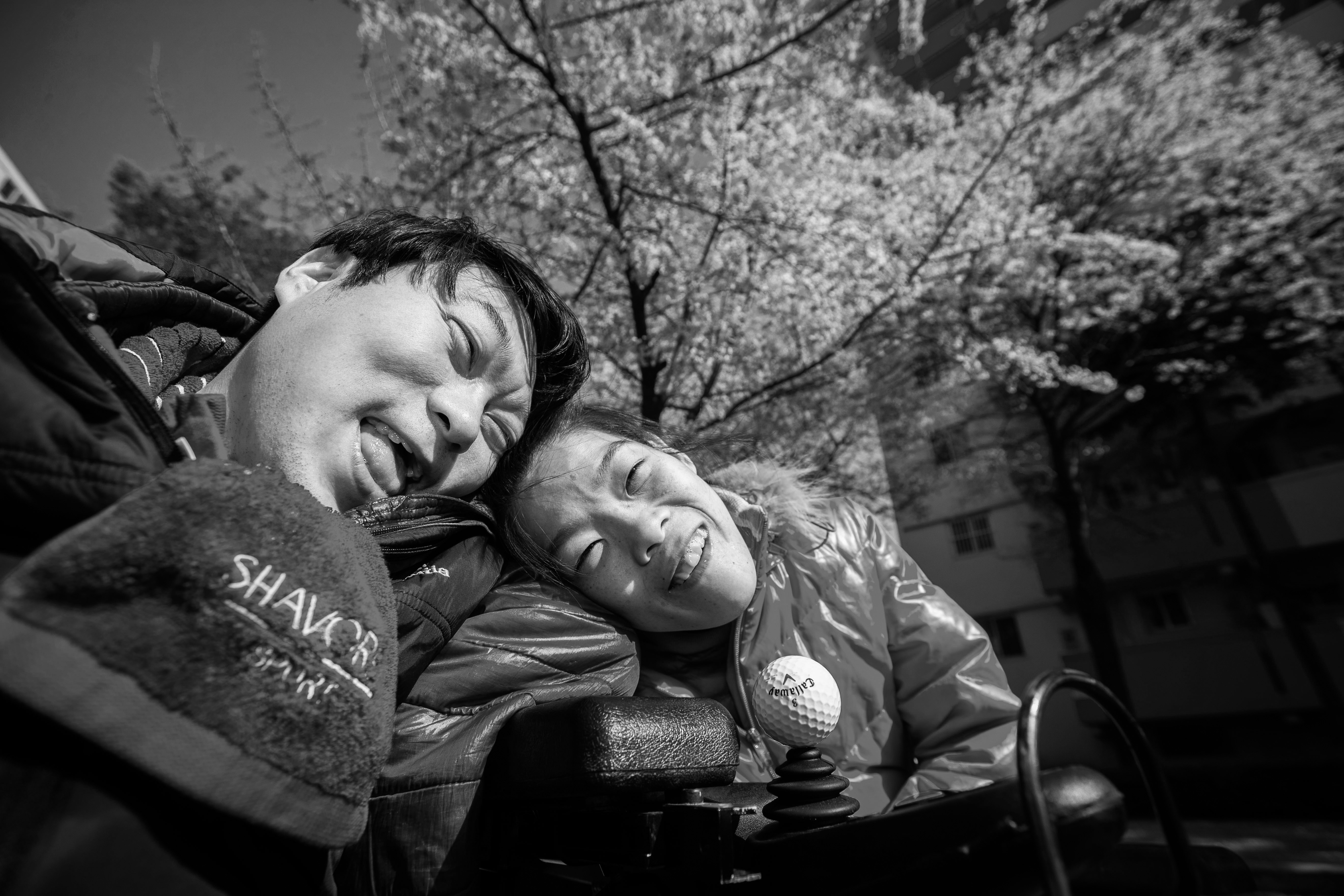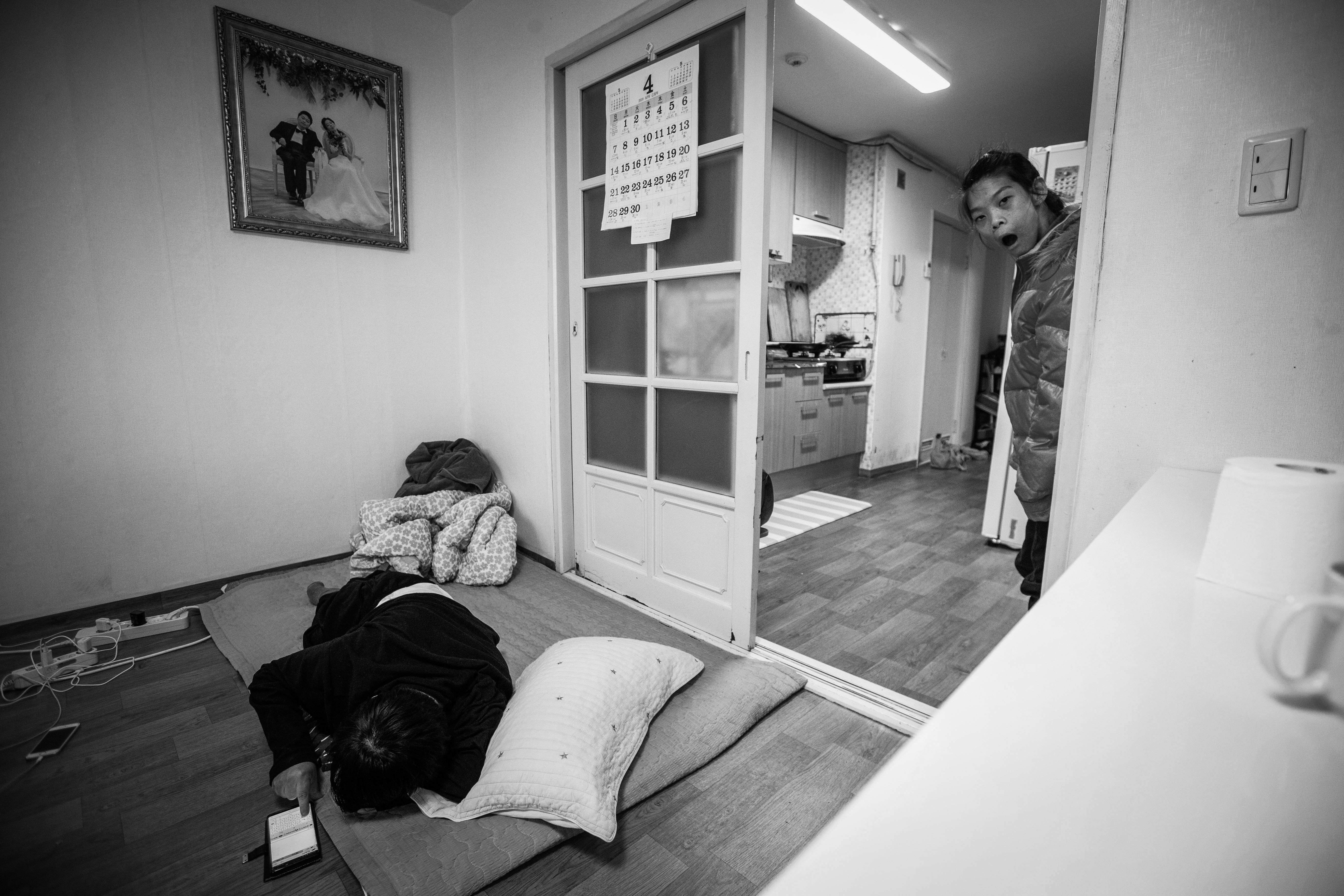 Sang-woo always spends his time lying down at home. Young-eun can barely stand up unless there is a wall or an object to support her. They provide strength to each other. A recently hung wedding photo is displayed on the wall.It is not easy to walk side by side in electric wheelchairs. In public places, we cannot walk side by side and always have to follow behind.When they are alone together, they express their love for each other.They had a magnificent wedding ceremony. The wedding was held amidst the blessings of disability organizations and many others.Youngeun left a message on the chat program designed for individuals with severe disabilities: “I had briefly visited the facility, but since there were specific visiting hours, I could only see them for a short time. I was worried that if I started dating, I might be taken to the director’s office and scolded, so I kept my feelings to myself. Now that I am back at the facility, I have re-enrolled. As for pregnancy, I haven’t made any plans yet. I would like to have a child, but given my disability, we have mutually agreed not to pursue that for now.”Youngeun lightly touches Sangwoo’s cheek and smiles, prompting Sangwoo to poke Youngeun’s cheek in return. This is one way they express their affection for each other.Sangwoo and Youngeun attached a golf ball to the controller of the electric wheelchair for easier maneuverability. The two of them have become a couple item that their colleagues envy