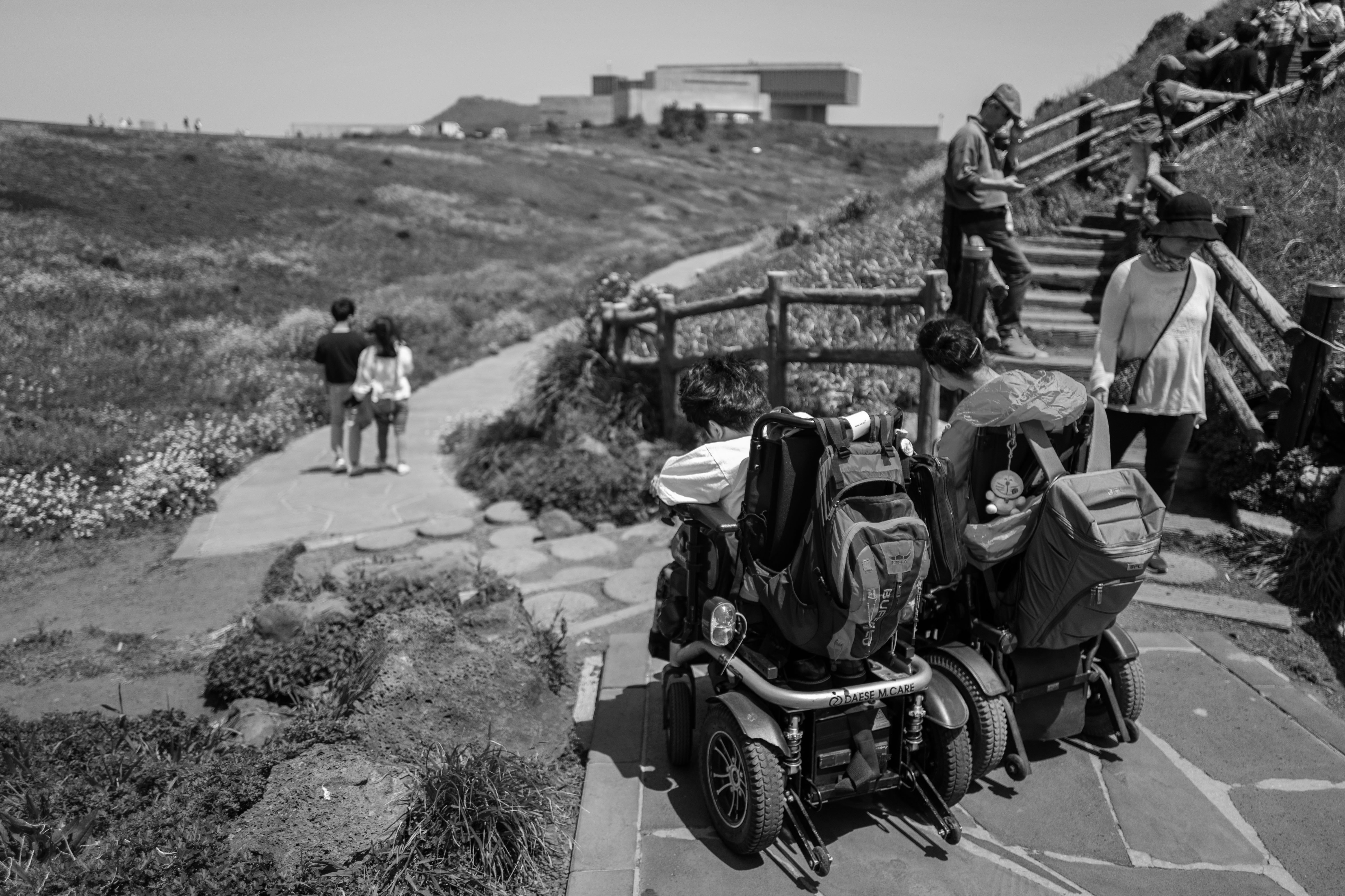 Youngeun urges Sangwoo to catch up quickly at the entrance of the apartment.During their honeymoon in Jeju Island, Youngeun wanted to visit the famous Glass House designed by renowned architect Tadao Ando. However, they stopped here as there was no longer a ramp available.Sangwoo gently placed his hand on the shoulder of his sleeping wife, Youngeun, embracing her. For Sangwoo, who finds it difficult to even raise his hand, this simple gesture is a way to express his feelings.Sangwoo and Youngeun smile together under the fully bloomed cherry blossoms in spring.