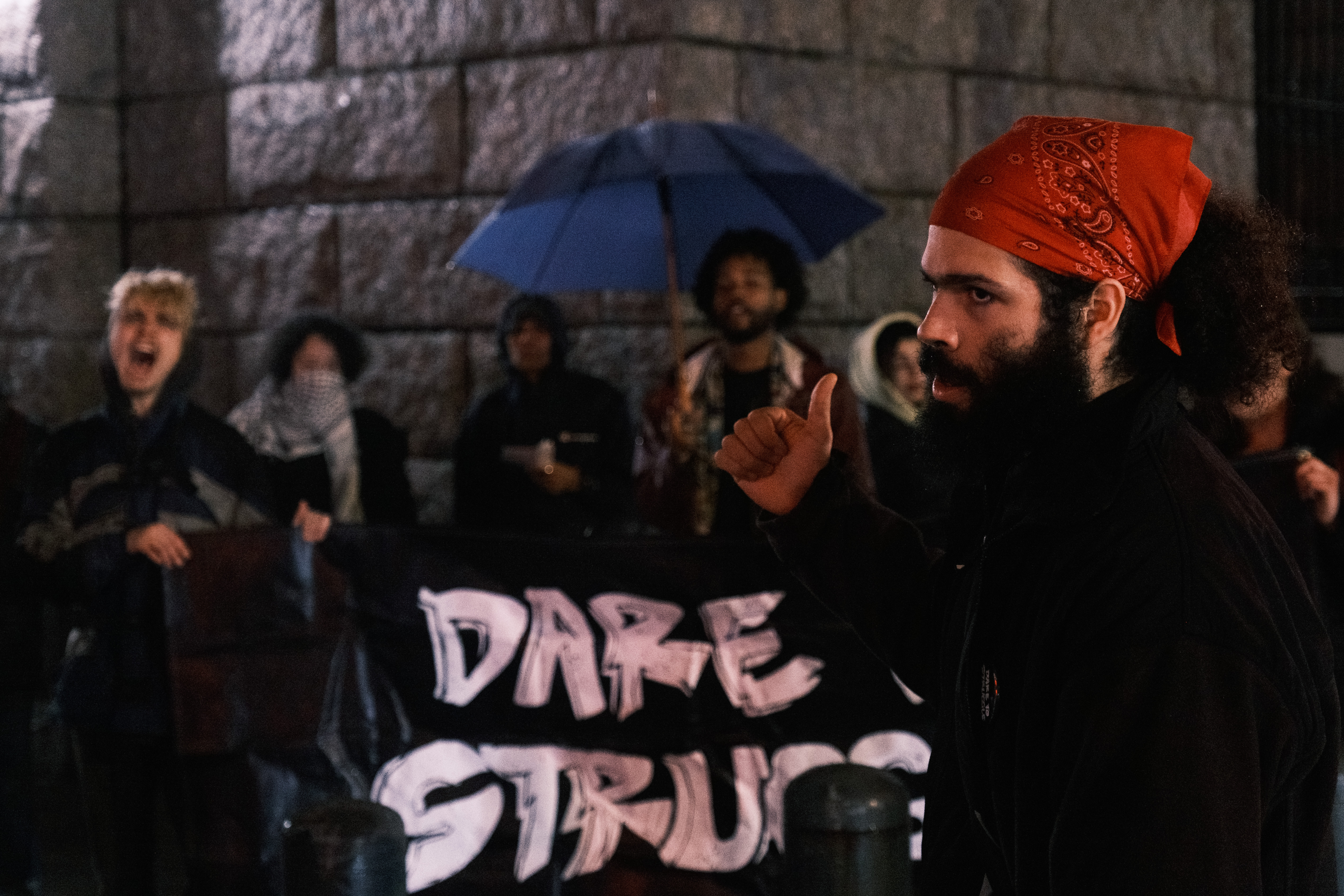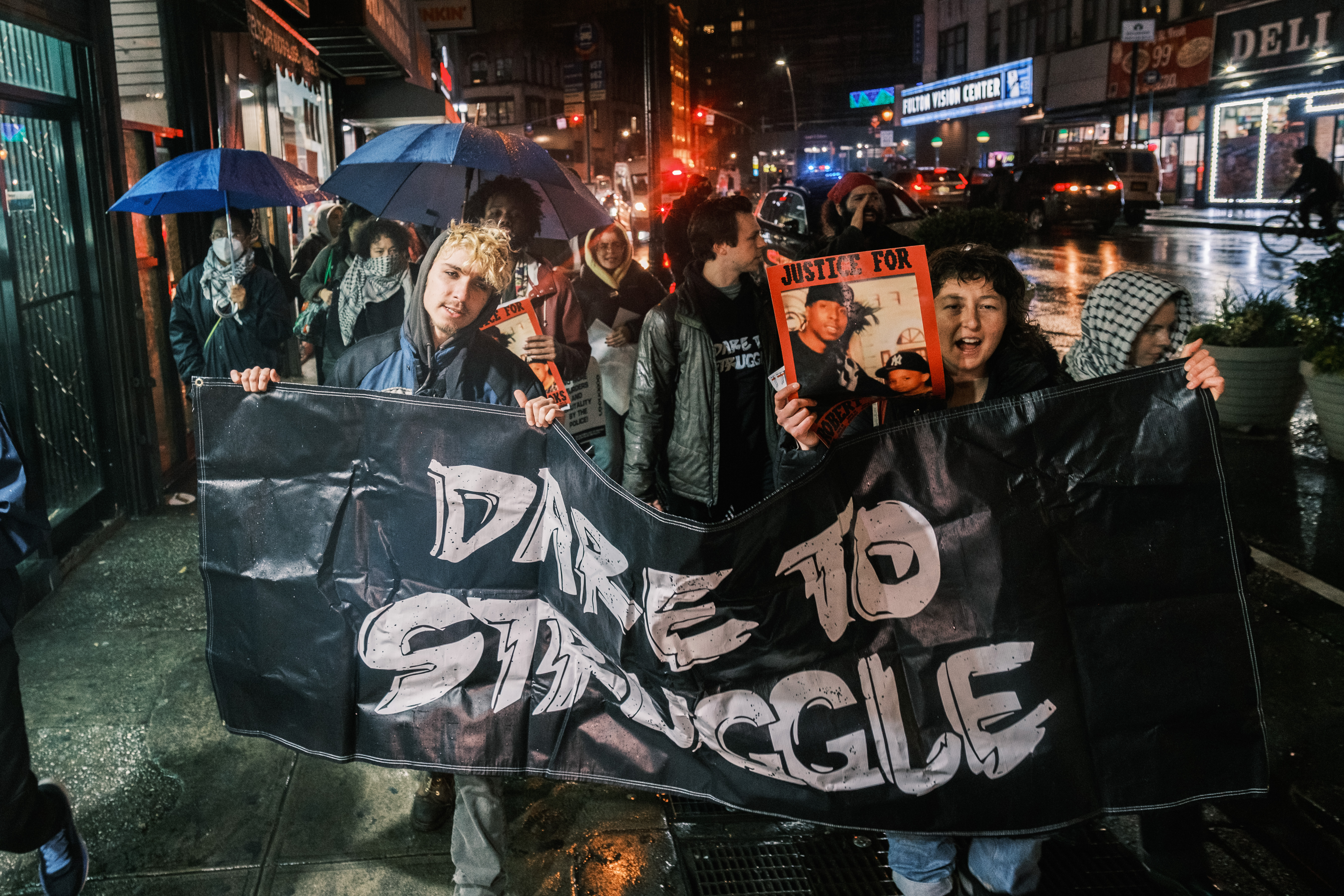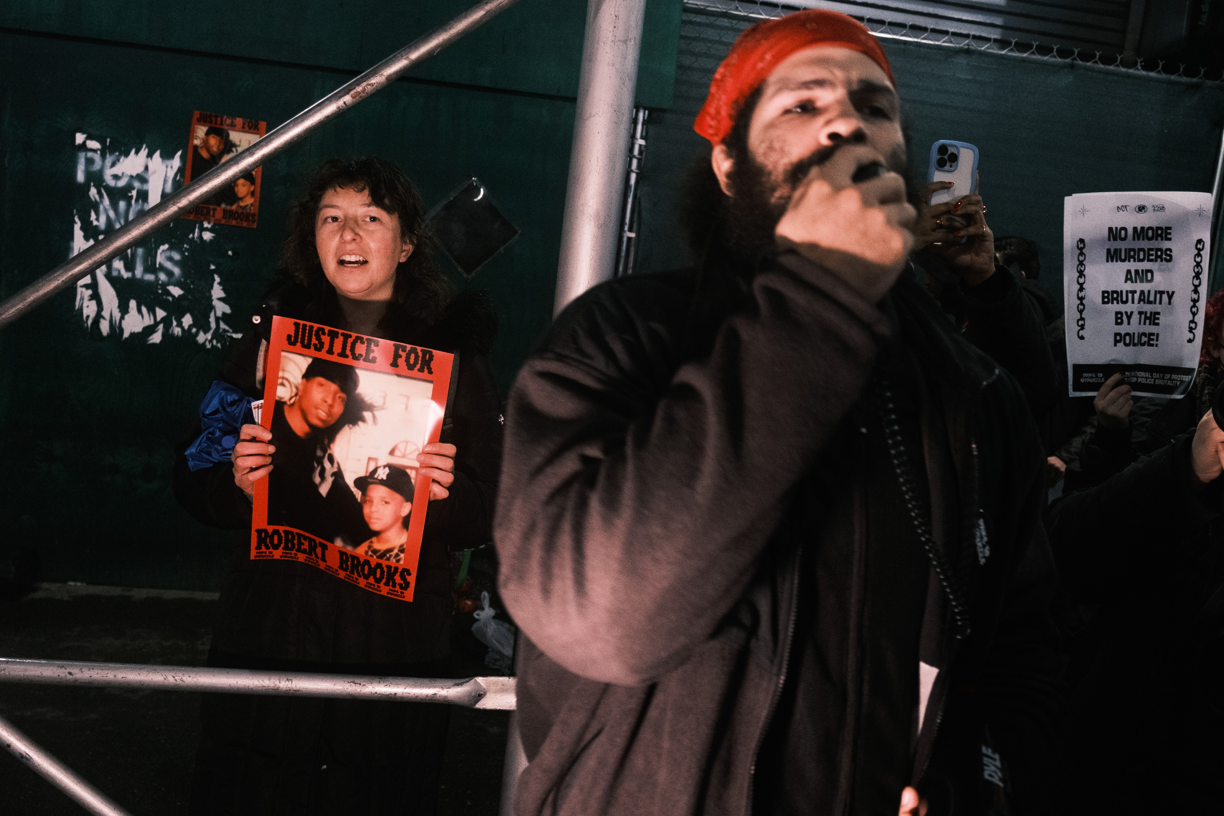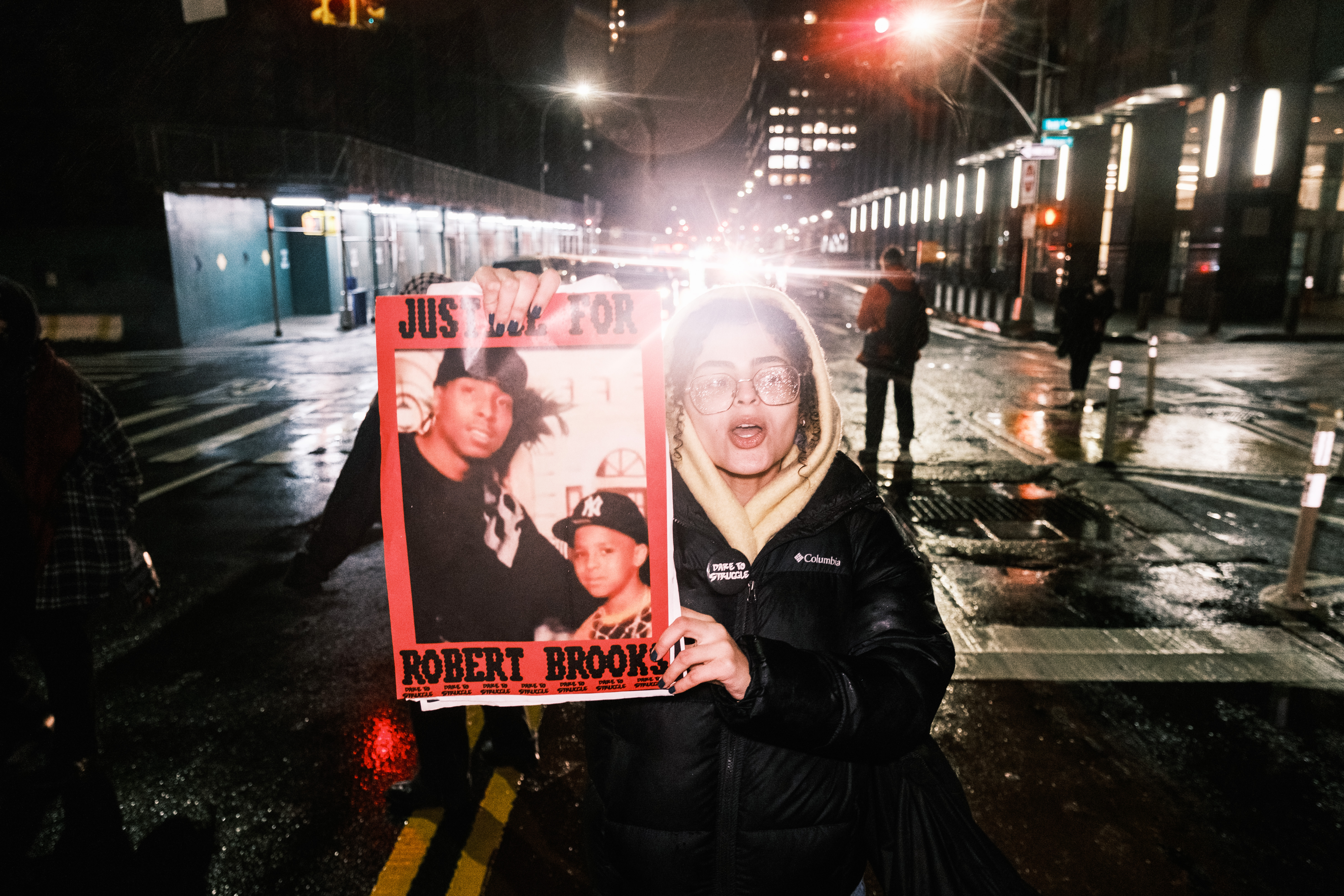 Protesters gathered Thursday evening, December 28, at the intersection of Jay Street and Fulton Street, demanding justice for Robert Brooks, a 43-year-old inmate who died on December 10 after allegedly being beaten by corrections officers at Marcy Correctional Facility. The demonstration, organized by Dare to Struggle NYC, called for accountability for those involved and systemic reforms in New York’s prison system.
