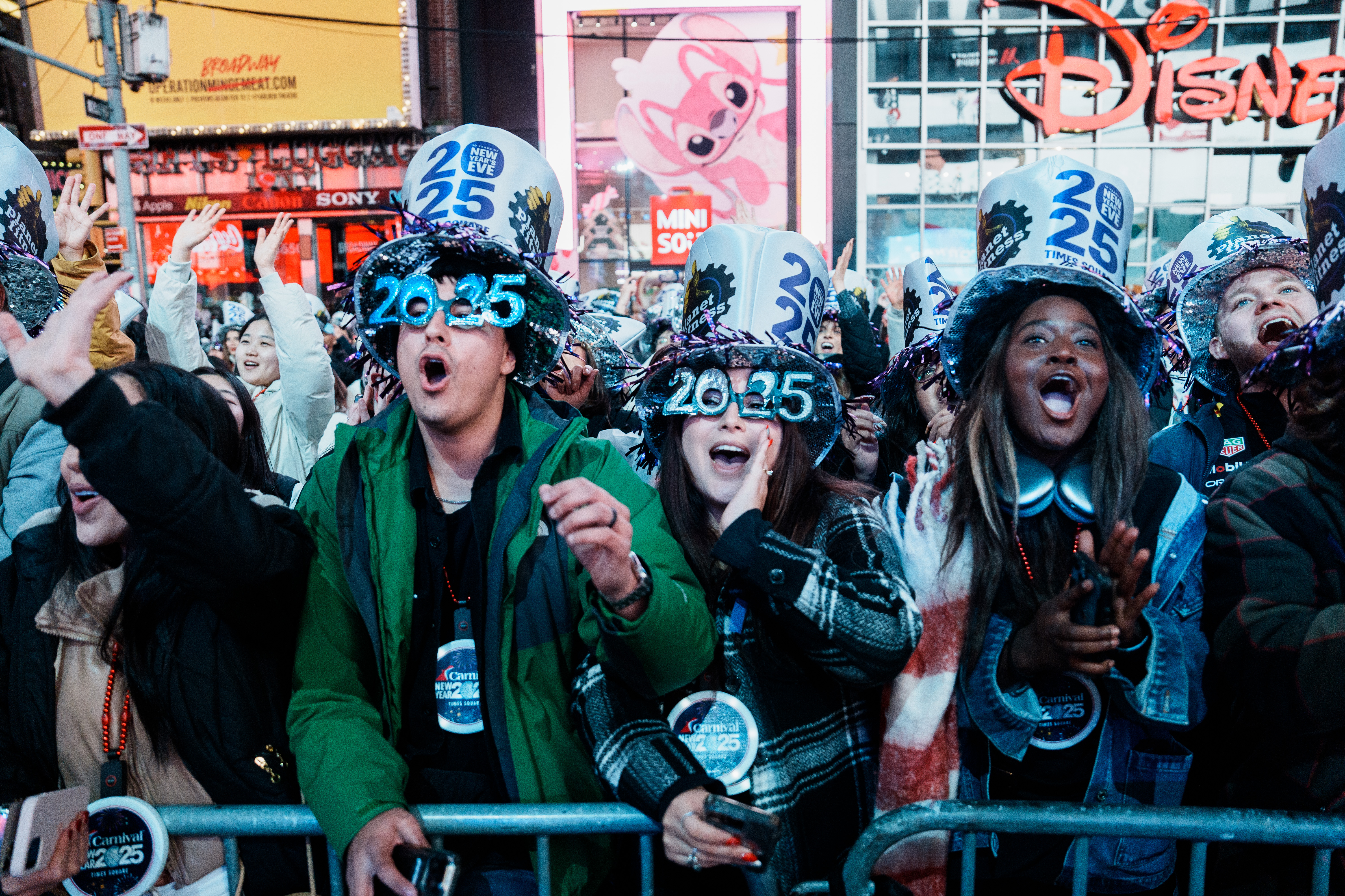 Over a million people celebrate the New Year during the iconic ball drop at Times Square in New York City on January 1, 2025. The crowd erupted in cheers, kisses, and photo-taking as confetti filled the air at the stroke of midnight. The tradition, which began in 1907, marks the New Year with the descent of a glowing crystal ball, followed by a shower of confetti and cheers at midnight.