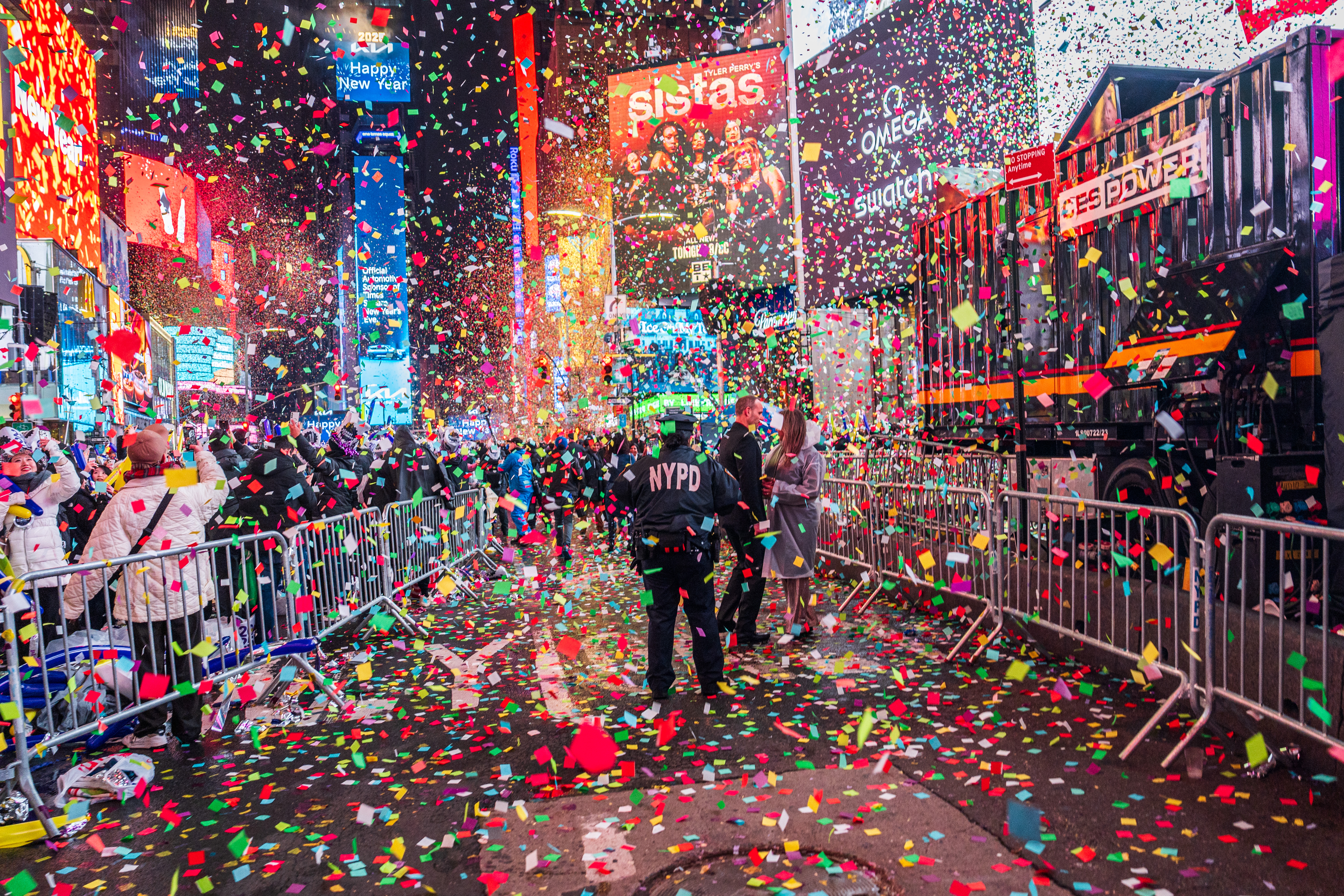 Over a million people celebrate the New Year during the iconic ball drop at Times Square in New York City on January 1, 2025. The crowd erupted in cheers, kisses, and photo-taking as confetti filled the air at the stroke of midnight. The tradition, which began in 1907, marks the New Year with the descent of a glowing crystal ball, followed by a shower of confetti and cheers at midnight.