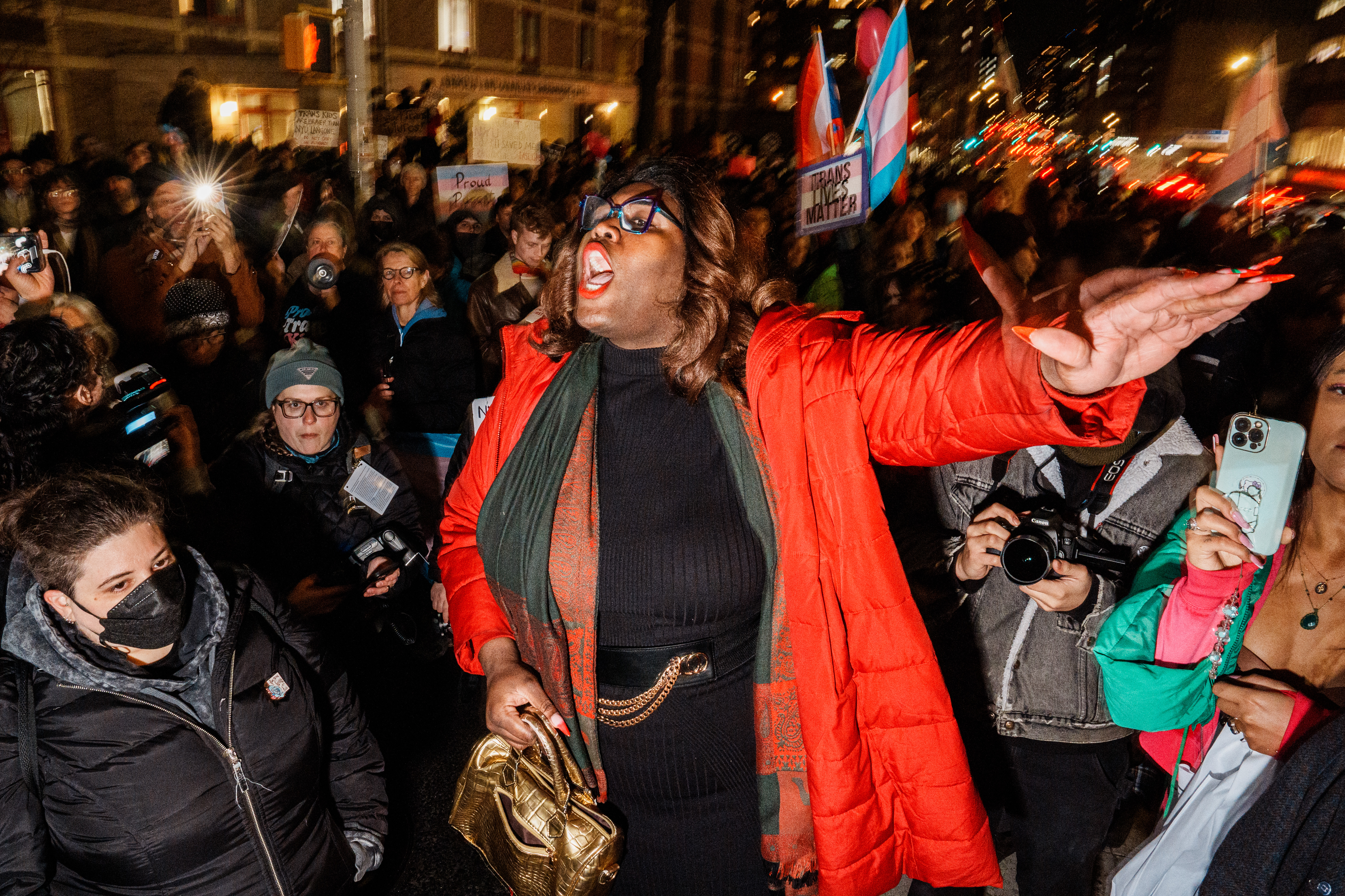 Protesters held signs and chanted slogans advocating for transgender rights and access to medical care. The executive order prohibits federal funding for gender-affirming treatments for individuals under 19, prompting hospitals, including NYU Langone, to limit related services.
